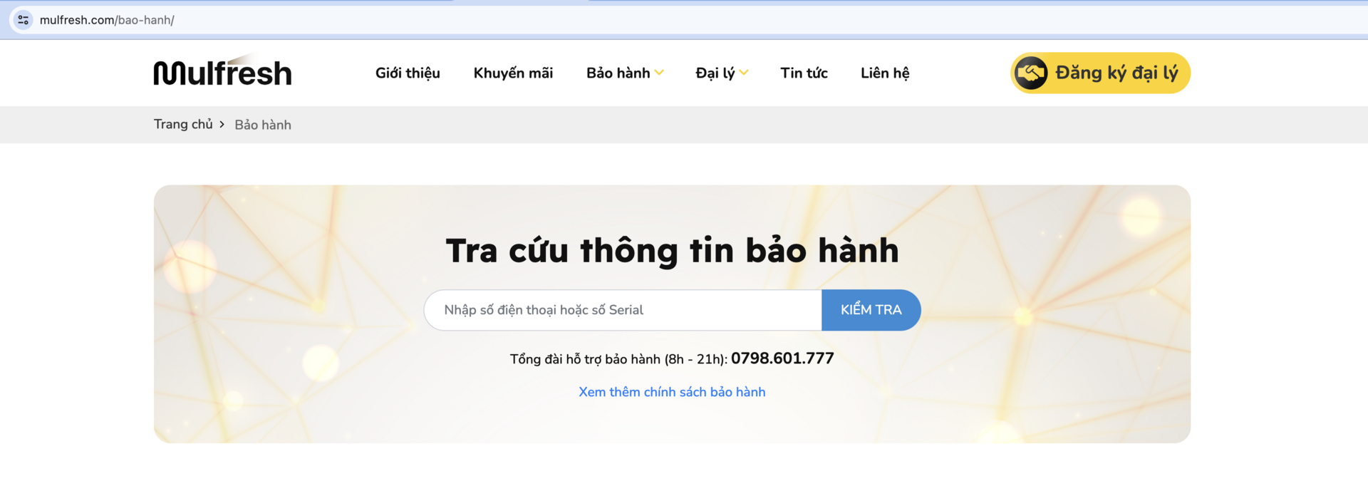 - Truy cập vào website: https://mulfresh.com/bao-hanh/